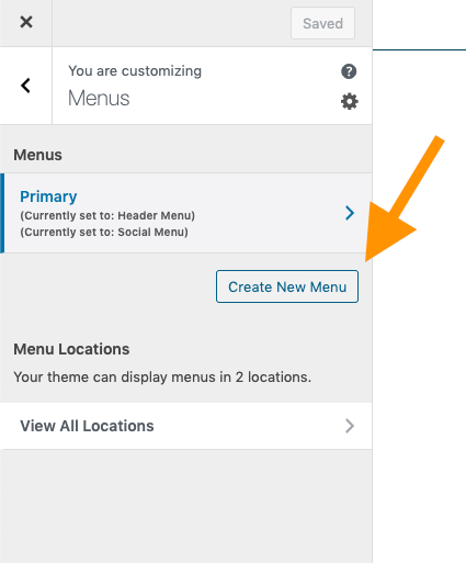 If your theme has a social menu option, you can head to the "Customize" screen to add a social menu. Start by clicking the "Create New Menu" button.