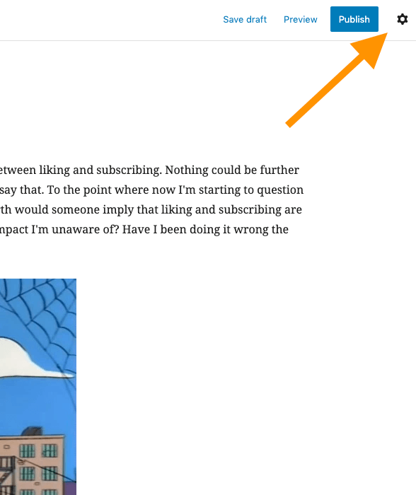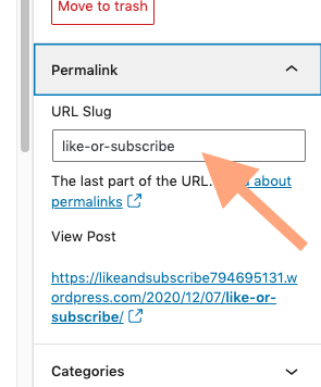 Go to the post for which you want to edit the slug, and click on the "Settings" gear icon in the top right.